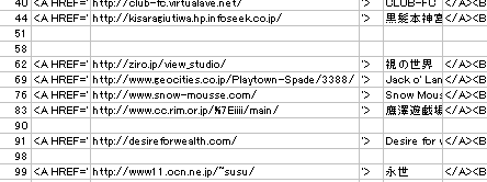 とりあえずちょっと協力してもらって、メアド調べまで終了。あとは参加依頼を出すサイト様をリストアップして、サイト情報を取り出しやすくしたら完璧な完成形になるのかな。適当につけてる1文字略称がサイトの多さから段々厳しく…。