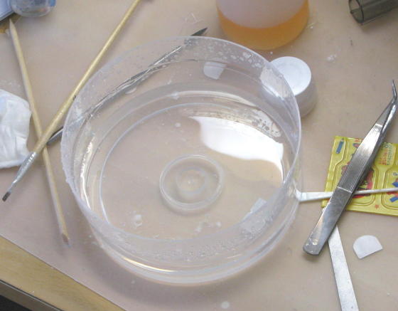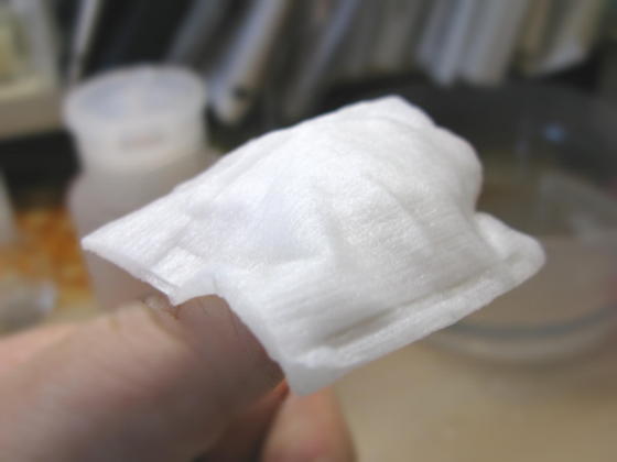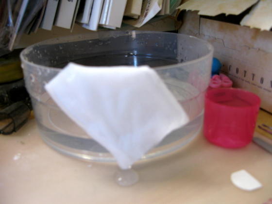 動かさないように気をつけながら、転写シート全体に水を浸透させていきます