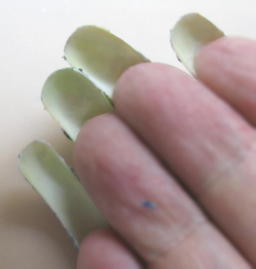 変わったことといえば、爪幅はずれることも考えてぴったりよりはいくらか多めに転写シートを作っておいた方がいいということぐらい。長さもそうね。余っても削ればいいわけで(下部に書いてあります)