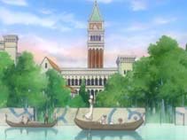 ARIA屈指の名物ポイントですが、ヴェネツィアには緑自体が郊外に出ないとなかなかない様子でして、劇中の雰囲気から感じられた大鐘楼近くっぽい感じを大事にすると、この広場はさすがになさそうですね。また、向かいに見える塀というのは、地表と水面がほとんど同じ高さというヴェネツィアの作りからして基本的にはなさそうです。